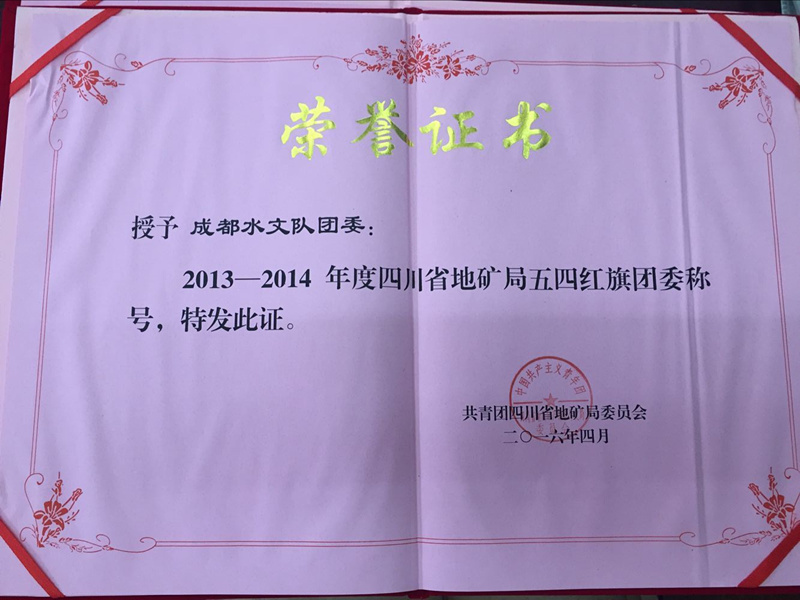 5月3日,局團委2016年度工作會議在溫江召開,會上表彰了2013年-2014年度各類先進集體和先進個人。我隊團委榮獲五四紅旗團委稱號,巖土工程公司榮獲青年文明號稱號,隊團委書記李彥婷榮獲優秀團干部稱號,地質工程公司袁磊榮獲青年崗位能手稱號,環境工程中心石鑫榮獲優秀共青團員稱號。