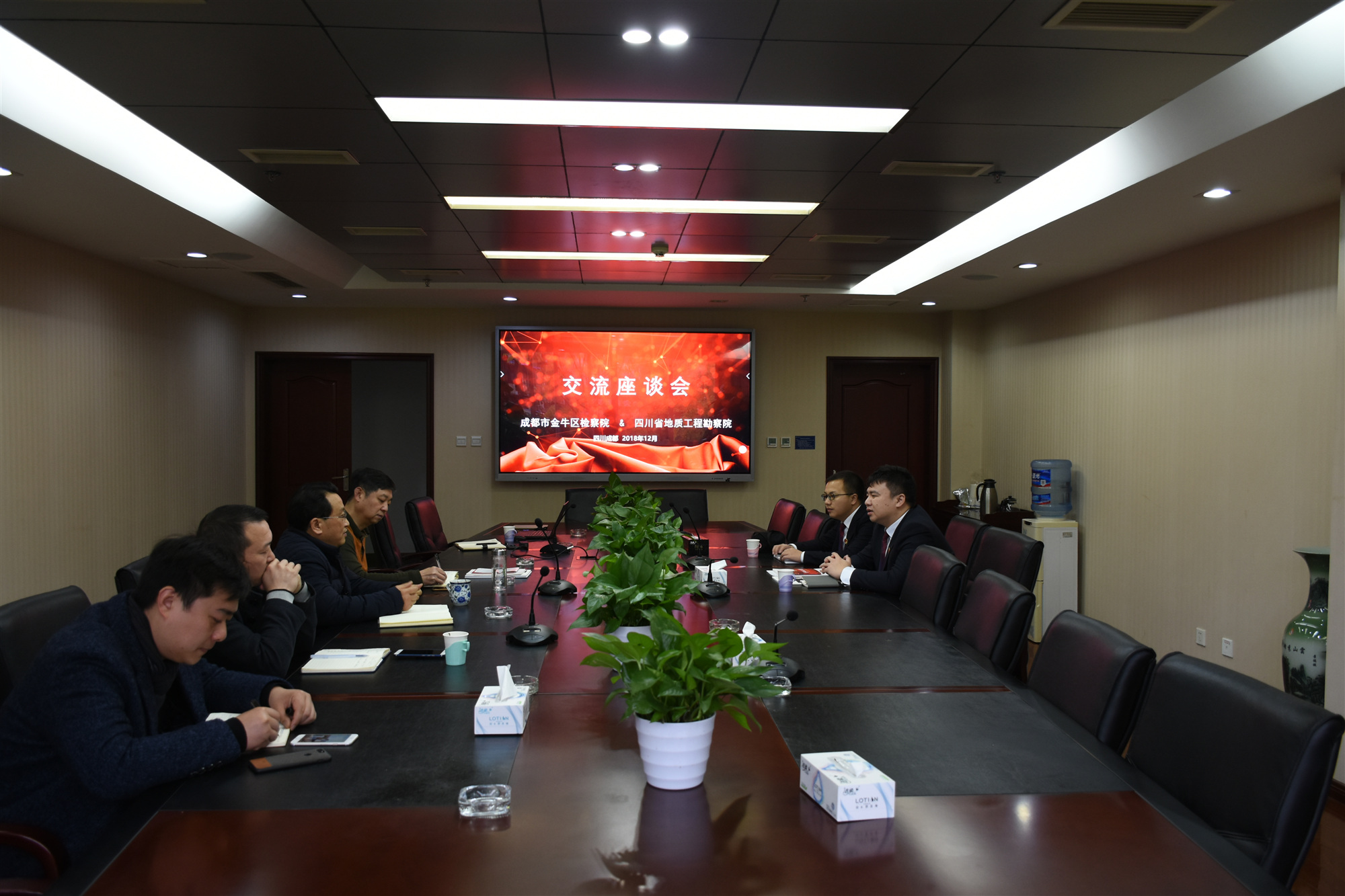 12月7日,成都市金牛區(qū)檢察院職務(wù)犯罪偵查與預(yù)防綜合科科長任立君一行3人到我院交流座談,為我院提供法律咨詢服務(wù),并征求對金牛檢察工作的意見建議。院黨委副書記、紀(jì)委書記兼工會主席廖華成、紀(jì)檢監(jiān)察室、地質(zhì)礦產(chǎn)公司、市場部、綜合管理部等部門負(fù)責(zé)人參加座談會。