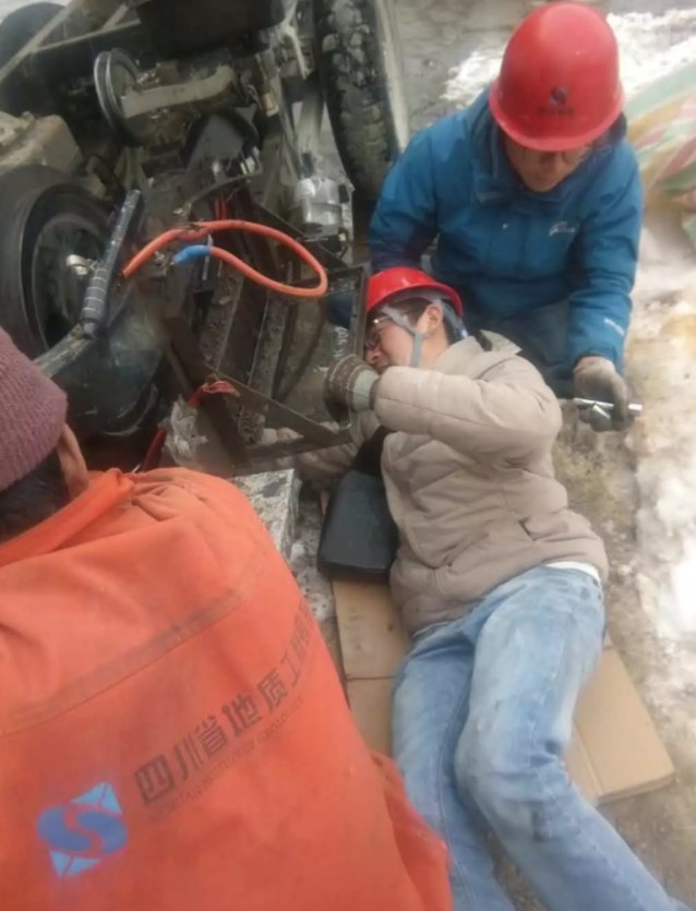 項(xiàng)目經(jīng)理馬天華立即召開(kāi)緊急會(huì)議,討論解決方案。由于項(xiàng)目工地距離縣城較遠(yuǎn),近距離的鄉(xiāng)鎮(zhèn)又沒(méi)有維修條件,無(wú)論是重新購(gòu)置設(shè)備,還是前往縣城維修設(shè)備或者請(qǐng)維修師傅前來(lái),都至少要耽誤一周的工期。為確保項(xiàng)目順利開(kāi)工,項(xiàng)目部成員馬天華、唐爽、李博等人討論決定,對(duì)已壞的三輪車(chē)進(jìn)行拆解,取下能用的柴油機(jī)及零件組裝到同一臺(tái)三輪車(chē)上。他們通過(guò)網(wǎng)上查閱資料,電話(huà)咨詢(xún)等,克服了工地現(xiàn)場(chǎng)零件缺失、材料不足的困難,在冰天雪地中完成了組裝任務(wù),最終使其中一輛三輪車(chē)實(shí)現(xiàn)運(yùn)轉(zhuǎn),可以勝任硐內(nèi)的棄渣轉(zhuǎn)運(yùn)工作。