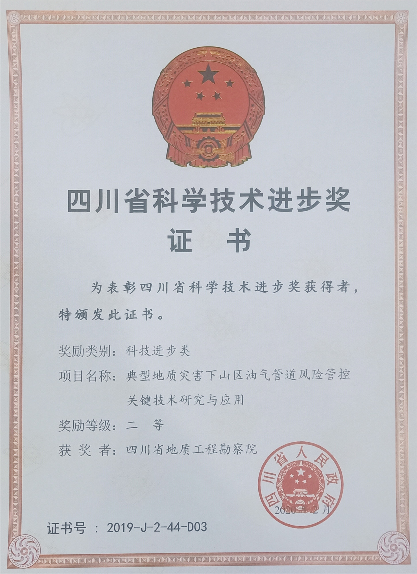 4月21日上午,四川省科學(xué)技術(shù)獎(jiǎng)勵(lì)大會(huì)在成都舉行,大會(huì)公布了2019年度四川省科技進(jìn)步獎(jiǎng)獲獎(jiǎng)名單。其中,四川省地質(zhì)工程勘察院集團(tuán)有限公司《典型地質(zhì)災(zāi)害下山區(qū)油氣管道風(fēng)險(xiǎn)管控關(guān)鍵技術(shù)研究與應(yīng)用》項(xiàng)目獲四川省科學(xué)技術(shù)進(jìn)步獎(jiǎng)二等獎(jiǎng)。
