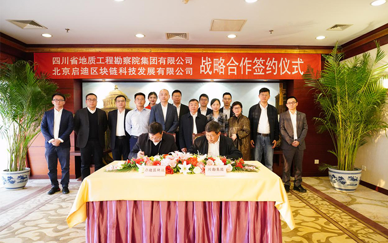 10月16日,四川省地質工程勘察院集團有限公司(簡稱“川勘集團”)與北京啟迪區塊鏈科技發展有限公司(簡稱“啟迪區塊鏈集團”)在京簽署戰略合作協議,雙方將在生態保護、災害監測、智慧應急等方面展開深度合作。啟迪控股高級副總裁、啟迪數字集團董事長、啟迪區塊鏈集團董事長王鼎,川勘集團董事長、總經理安世澤代表雙方簽署協議。